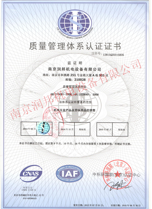 潤邦公司順利通過ISO9001質量體系認證年審