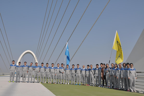 沿著青奧會(huì)議中心腳下的坡道順行而上,一座壯觀的大橋蹦到了眼前,它就是我們的目的地——“南京眼”。羽翼般斜拉的鋼索振翅向上就像豎琴的琴弦,穿行其間猶如琴弦上跳躍的音符。潤邦精神也如同這鋼索,堅(jiān)韌不拔,奮力向上,展翅高飛。