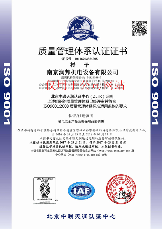 2016年5月25日,我公司再次順利通過ISO9001質(zhì)量管理體系認(rèn)證,以下是認(rèn)證證書: